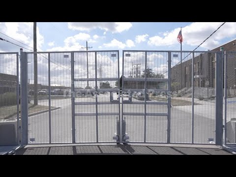 1. Wide of fence put up outside immigration processing facility blocking the public road